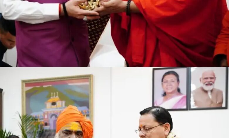 Dehradun news मुख्यमंत्री धामी से मिले अखाड़ा परिषद अध्यक्ष श्रीमहंत रविंद्र पुरी,महामंत्री श्रीमहंत हरि गिरि और आचार्य महामंडलेश्वर स्वामी कैलाशानंद गिरि