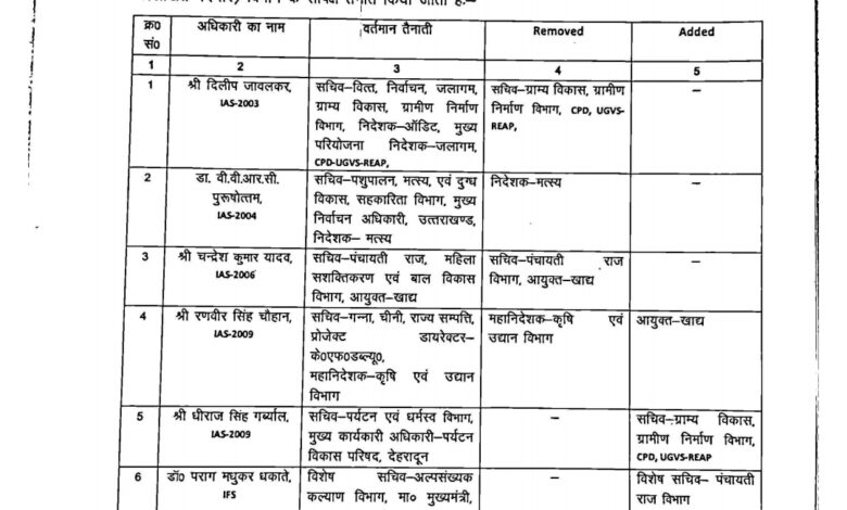 शासन ने किए बड़े तबादले:हरिद्वार रुड़की विकास प्राधिकरण की उपाध्यक्ष बनी सोनिका,देखे लिस्ट