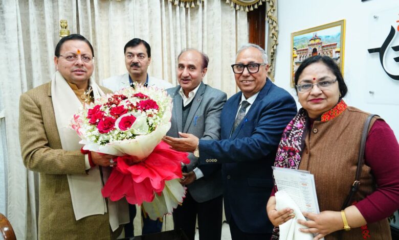 प्रोविंशियल ऐडेड कॉलेज एसोसिएशन (PACA) के एक उच्चस्तरीय प्रतिनिधिमंडल ने राज्य उच्च शिक्षा उन्नयन परिषद के उपाध्यक्ष प्रो. डॉ देवेंद्र भसीन एवं डॉ. जयपाल सिंह चौहान के नेतृत्व में प्रदेश के यशस्वी मुख्यमंत्री श्री पुष्कर सिंह धामी से उनके सरकारी आवास पर आज शिष्टाचार स्वरूप भेंट की।