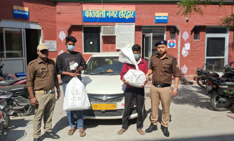 हरिद्वार। उत्तराखंड के मुख्यमंत्री के ‘ड्रग्स फ्री देवभूमि मिशन 2025’ के तहत हरिद्वार पुलिस की नशा तस्करों पर सख्त कार्रवाई जारी है। इसी कड़ी में कोतवाली नगर पुलिस ने बुधवार को दो नशा तस्करों को गिरफ्तार कर उनके कब्जे से 15 किलोग्राम अवैध गांजा और एक स्विफ्ट डिजायर कार बरामद की। बरामद गांजे की बाजार कीमत करीब चार लाख रुपये आंकी गई है। आरोपियों के खिलाफ एनडीपीएस एक्ट के तहत मुकदमा दर्ज कर अग्रिम कार्रवाई की जा रही है।