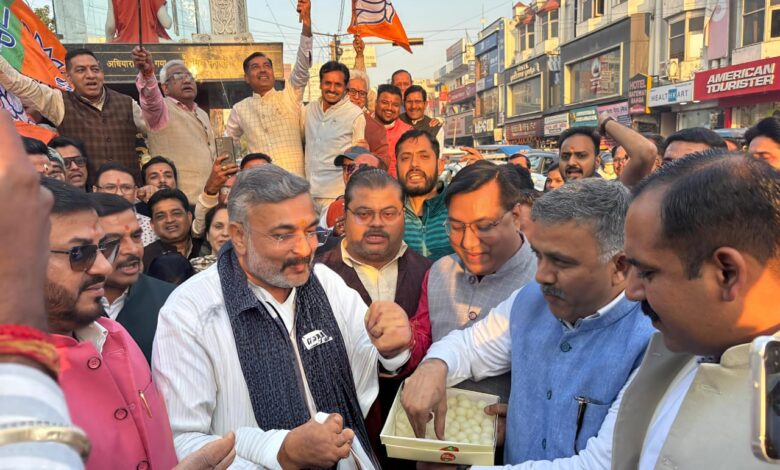 यह जीत नरेंद्र मोदी एवं भाजपा संगठन की जीत है। जिन्होंने रात दिन लगकर भाजपा की नीतियों को जन-जन तक पहुंचाने का काम किया। बिहार राज्य में सरकार बनने पर सभी कार्यकर्ताओं को बधाई और शुभकामनाएं देते हैं। इस अवसर पर नगर विधायक मदन कौशिक ने सभी को शुभकामनाएं और बधाई देते हुए कहा कि बिहार के अंदर भारतीय जनता पार्टी और एनडीए की जितने ने साबित कर दिया है कि बिहार के अंदर एनडीए के द्वारा विकास किया है और केंद्र की सरकार के द्वारा बिहार से जंगल राज को समाप्त कर सुशासन की स्थापना की गई है। बिहार में महिला ,पिछड़ों मजदूर, किसानों ने जातिवाद धर्मवाद से उपर उठकर एनडीए को समर्थन देकर भाजपा को प्रचंड की दिलाई है। हम सभी बिहार की जनता को प्रणाम करते हैं जिन्होंने भारतीय जनता पार्टी पर विश्वास किया।