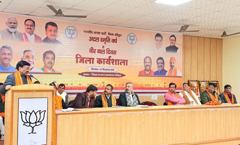हरिद्वार, भारतीय जनता पार्टी जिला कार्यालय जगजीतपुर हरिद्वार पर अटल स्मृति वर्ष व वीर बाल दिवस पर आयोजित होने वाले कार्यक्रमों की जिला कार्यशाला का आयोजन किया गया। जिला कार्यशाला की अध्यक्षता जिला अध्यक्ष आशुतोष शर्मा और संचालन जिला महामंत्री संजीव चौधरी और हीरा सिंह बिष्ट ने किया। कार्यक्रम में मुख्य वक्ता प्रदेश उपाध्यक्ष और जिला प्रभारी अनिल गोयल रहे।