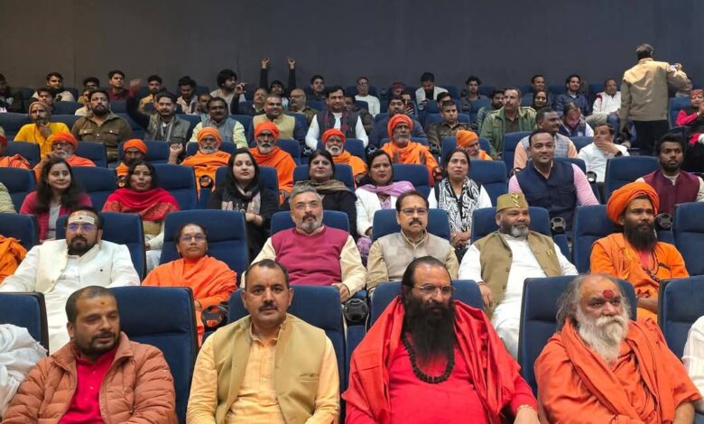 हरिद्वार। पेंटागन मॉल रोशनाबाद में भारतीय संस्कृति और गौ माता पर आधारित फिल्म ‘गोदान’ का विशेष प्रदर्शन आयोजित किया गया। इस अवसर पर अखिल भारतीय अखाड़ा परिषद के अध्यक्ष श्रीमहंत डॉ रवींद्र पुरी, राष्ट्रीय स्वयंसेवक संघ हरिद्वार के विभाग प्रचारक राकेश कुमार तथा भारतीय जनता पार्टी के जिला अध्यक्ष आशुतोष शर्मा के नेतृत्व में बड़ी संख्या में भाजपा कार्यकर्ता और साधु-संत उपस्थित रहे। कार्यक्रम के दौरान “भारत माता की जय”, “गौ माता की जय” और “वंदे मातरम्” के नारों से सिनेमा हॉल गूंज उठा।