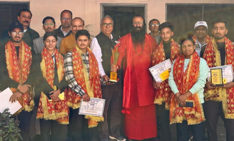 आज महाविद्यालय के प्राचार्य कक्ष में अखिल भारतीय अखाड़ा परिषद, माँ मनसा देवी मंदिर ट्रस्ट तथा कॉलेज प्रबन्ध समिति के अध्यक्ष श्रीमहन्त डॉ रविन्द्र पुरी जी महाराज ने विजेता खिलाड़ियों तथा कोच को सम्मानित किया और अपना आशीर्वाद दिया। इस अवसर पर खिलाड़ियों को बधाई देते हुए श्रीमहन्त डॉ रविन्द्र पुरी जी महाराज ने कहा कि आज सम्पूर्ण विश्व में तनाव तथा अस्थिरता का दौर चल रहा हैं और ऐसे समय पर हमारे देश प्रदेश का युवा मेधा के खेल शतरंज में अपनी प्रतिभा, संकल्प, लग्न का परिचय दे रहा हैं। श्रीमहन्त ने कहा कि यह प्रतिभावान और संकल्पित युवा ही सशक्त भारत की नींव हैं। इस स्वर्णिम सफलता पर हर्ष व्यक्त करते हुए महाविद्यालय के प्राचार्य प्रो. (डॉ.) सुनील कुमार बत्रा ने कहा कि महाविद्यालय अपने विद्यार्थियों के सर्वांगीण विकास और खेल प्रतिभाओं को तराशने के लिए सदैव प्रतिबद्ध है। विजयी खिलाड़ियों ने अपनी इस ऐतिहासिक जीत का श्रेय कॉलेज प्रबंधन समिति के अध्यक्ष श्री महंत डॉ रविन्द्रपुरी जी के कुशल संरक्षण और अपने महाविद्यालय के प्राचार्य के निरंतर मार्गदर्शन को दिया है। इस अवसर पर अधिष्ठाता छात्र कल्याण डॉ संजय माहेश्वरी, खेल कूद मुख्य अधीक्षक विनय थपलियाल, डॉ शिव कुमार चौहान, कोच रंजीता, कोच भारत भूषण, कार्यालय अधीक्षक मोहन चंद्र पाण्डेय मुख्य रूप से उपस्थित रहे।