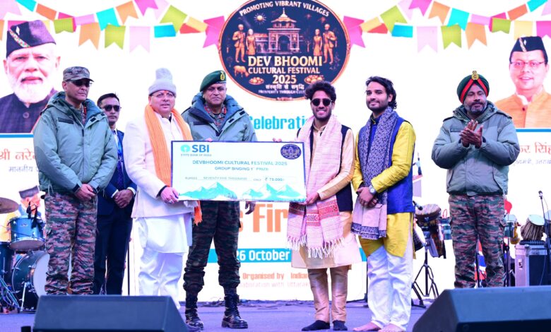 मुख्यमंत्री श्री पुष्कर सिंह धामी रविवार को देश के प्रथम गाँव माणा में आयोजित दो दिवसीय “देवभूमि सांस्कृतिक महोत्सव 2025” के समापन समारोह में पहुँचे| इस आयोजन में स्थानीय समुदायों, पर्यटकों और गणमान्य अतिथियों की उत्साहपूर्ण सहभागिता देखने को मिली। महोत्सव का संचालन भारतीय सेना एवं उत्तराखंड सरकार के संयुक्त तत्वावधान में किया गया।