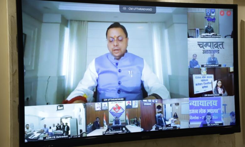 मुख्यमंत्री श्री पुष्कर सिंह धामी ने वीडियो कॉन्फ्रेंसिंग के माध्यम से प्रदेश में ‘राजस्व लोक अदालत’ का शुभारम्भ किया। इस अवसर पर मुख्यमंत्री ने कहा कि न्याय व्यवस्था को अधिक सरल, सुलभ एवं प्रभावी बनाते हुए आम जनमानस को समयबद्ध न्याय उपलब्ध कराना राज्य सरकार की सर्वोच्च प्राथमिकता है। उन्होंने कहा कि यह पहल न्याय सुलभता की दिशा में एक महत्वपूर्ण कड़ी है। मुख्यमंत्री ने कहा कि राज्य सरकार का यह प्रयास प्रधानमंत्री श्री नरेन्द्र मोदी द्वारा दिए गए ‘सबका साथ, सबका विकास, सबका विश्वास और सबका प्रयास’ के मंत्र की भावना का विस्तार है। उन्होंने कहा कि प्रधानमंत्री द्वारा सदैव इस बात पर बल दिया गया है कि सरकार की योजनाओं का लाभ समाज के अंतिम व्यक्ति तक सरलता एवं शीघ्रता से पहुँचे।